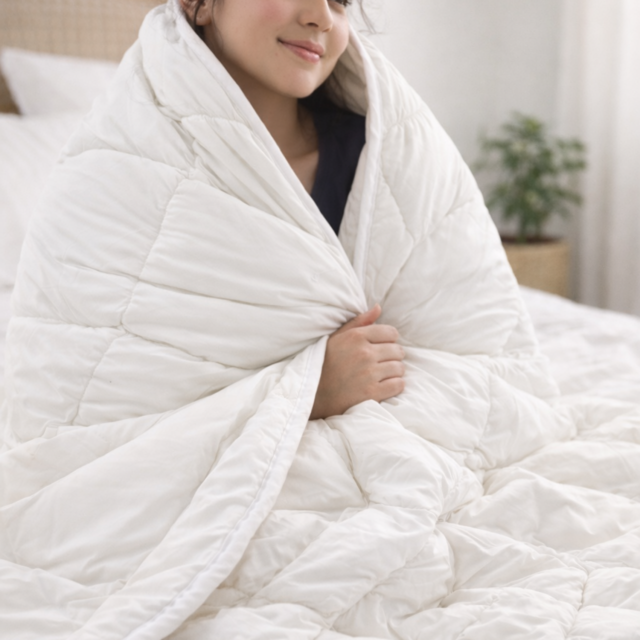 Pilotă Lână Merino 100% LanaWool | 180x220 cm Groasa 800 g/mp | Exterior Bumbac OekoTex Clasa 1, Iarna, Alb